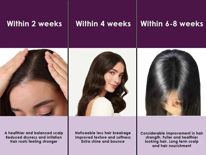 Use it 2–4 times a week. Massage a few drops into the scalp and leave it on for best results.